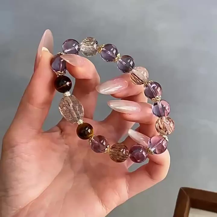 1 × Natural Amethyst Crystal Bracelet (round beads approx. 9–10mm)